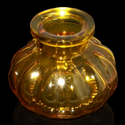 Szklany dzban fajki wodnej wyposażony w gruby kołnierz i masywna, płaską podstawę.