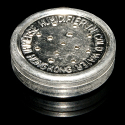 Bardzo praktyczny nawilżacz do tytoniu z metalową, perforowaną obudową. -