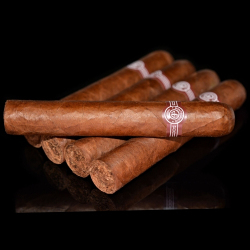 Od pierwszych chwil cygara oferują pełnię doznań, uwalniając aromaty cedru, przypraw i subtelnej słodyczy, które płynnie przeplatają się w dymie. Konstrukcja jest bezbłędna, co zapewnia perfekcyjny ciąg i równomierne spalanie. Gęsty, aksamitny dym otula podniebienie, rozwijając się w harmonijny sposób. W drugiej tercji smak staje się bardziej wyrazisty – pojawiają się nuty gorzkiej czekolady, espresso oraz czarnego pieprzu, które nadają cygarom głębi i charakteru. Dym staje się pełniejszy, a struktura blendu ujawnia swoje bogactwo, balansując między kremową łagodnością a intensywną pikantnością. Końcowa faza degustacji to esencja kunsztu tytoniowego, w której dominują akcenty przypraw korzennych, drewna i delikatnej ziemistości. Subtelna goryczka pojawia się na finiszu, wprowadzając eleganckie zakończenie, które długo pozostaje na podniebieniu. Spalanie jest spokojne i równe, pozwalając w pełni cieszyć się każdą chwilą.