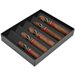 Davidoff Gift Selection Robusto to niesamowity zestaw pięciu najlepszych dominikańskich cygar Davidoff w kilku odmiennych blendach. Dzięki tak dużemu zróżnicowaniu zastosowanych mieszanek tytoniowych w poszczególnych cygarach, Aficonado ma możliwość przetestowania całego wachlarza smaków i aromatów.