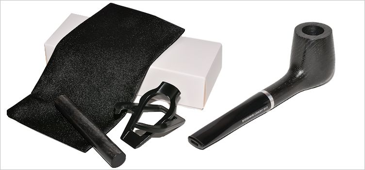W skład kompletu wchodzą: fajka legion 100 BL, czarny mieszek na fajkę, rozkładany stojak,