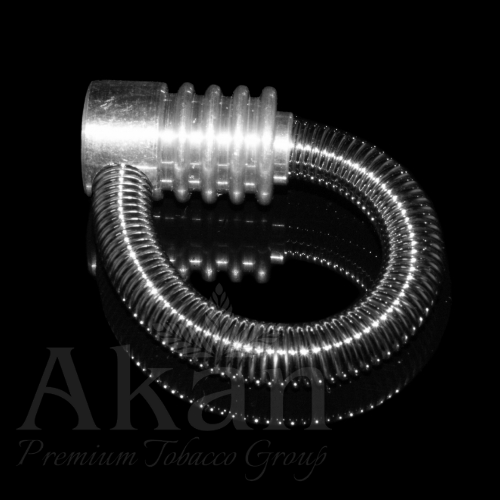 Metalowa fajeczka z przewodem dymowy zrobionym z mocnej sprężyny dzięki której całość może służyć jako brelok.