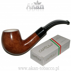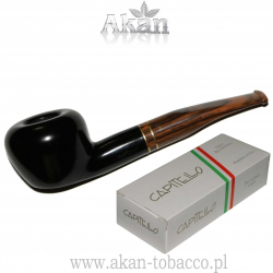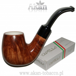 237,00 PLNCapitello 7223 to fajka wykonana z wrzośca, woskowana „na” filtr 9mm.Ustnik czarny, akrylowy. W główce wkładka z "pianki morskiej".