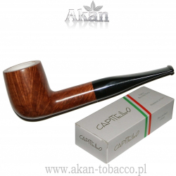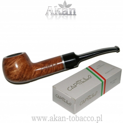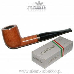 Capitello 7223 to fajka wykonana z wrzośca, woskowana „na” filtr 9mm.Ustnik czarny, akrylowy. W główce wkładka z "pianki morskiej".