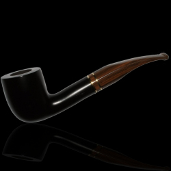 Czarna fajka wykonana z wrzośca, woskowana. Przystosowana do palenia z filtrami 9mm. Akrylowy ustnik kolorowy, ozdobiony dwoma złotymi pierścieniami.