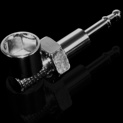 Metalowa fajeczka z przewodem dymowy zrobionym z mocnej sprężyny dzięki której całość może służyć jako brelok. -