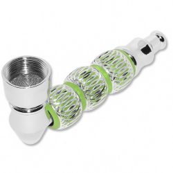 Lufka 52006 Green to metalowa fajka z bardzo oryginalnym zdobieniem. Wyposażona została w metalowe (wymienne) sitko, które zapobiega przedostawaniu się drobin podczas palenia do przewodu dymowego. Całość jest w bardzo łatwy sposób całkowicie rozbieralna (rozkręcana), a wykonanie korpusu z metalu w znaczny sposób schładza dym. Fajka/lufka umieszczona jest na blistrze i w skład kompletu wchodzi dodatkowo zestaw pięciu zapasowych, metalowych sitek.