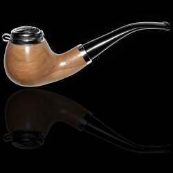 48,50 PLNFajka Bróg 45 Puella C. Jako surowca do powstania tej fajki użyto drewna polskiej (starej) gruszy. Wnętrze palenisko zostało pokryte prekarbonizatem, który w znacznym stopniu zabezpiecza fajkę przed przepaleniem. Sztylek został ozdobiony mosiężnym, szerokim pierścieniem. Czarny, długi ustnik został wyposażony w aluminiowy skraplacz. Z uwagi na fakt, że fajka powstała z naturalnego surowca usłojenie jak i intensywność kolorów różni się w poszczególnych egzemplarzach.