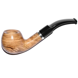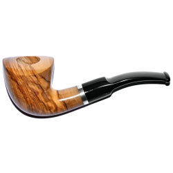 Passatore Olive 403139 to pięknie wykonana fajka z drewna oliwnego (woskowana) z szerokim "srebrnym" ringiem i akrylowym, czarnym ustnikiem. Przystosowana do palenia z filtrami 9mm.