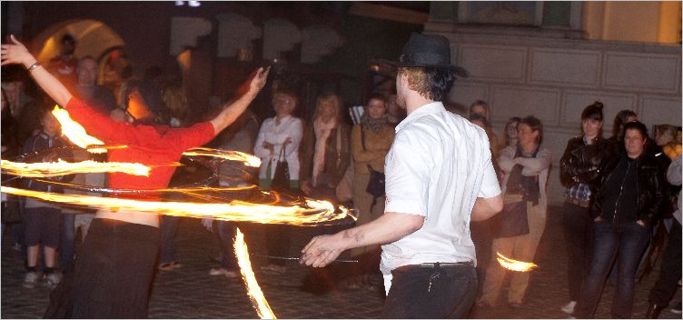 Aby schłodzić i zwolnić tempo uczestnicy raczyli się kolejnymi trunkami z lodem i znakomitymi cygarami w miłej towarzyskiej atmosferze. Przyjacielskim rozmowy przerwał dopiero występ grupy ‘tańczącej z ogniem’ z wiadomych przyczyn pokaz odbywał się na zewnątrz lokalu.