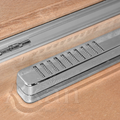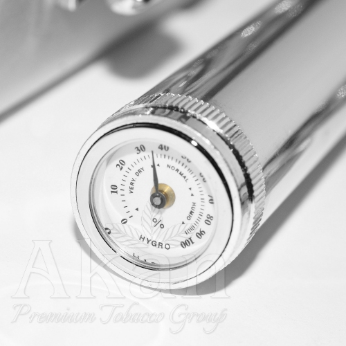 Humidor 97371 to wyłożony drewnem cedrowym (cedr hiszpański) aluminiowy pojemnik na cygara. W zestawie znajdują się jeszcze: metalowa, dwuostrzowa obcinarka, żarowa zapalniczka z wyrzynarką, metalowa tuba, także wyłożona cedrem z higrometrem i nawilżaczem. Obudowa wykonana została z aluminium, boczne okucia, zamek, zawiasy, uchwyt i pozostałe akcesoria w kolorze chromowanego metalu.