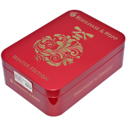 132,50 PLNTytoń fajkowy Kohlhase & Kopp Winter Edition 2022 to iście świąteczna kompozycja starannie wyselekcjonowanych, trzech różnych liści Virginii oraz Black Cavendish-a. Cudowny aromat dojrzałych mandarynek, cynamonu i intensywna nuta goździków nadaje wyjątkową świąteczną atmosferę. Całość dopełnia doskonały kremowy aromat ciemnej czekolady. Tytoń zapakowany został w czerwoną, metalową puszkę, ze wspaniałymi złotymi zdobieniami w kształcie świątecznej bombki.