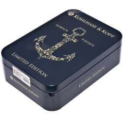 132,50 PLNTytoń fajkowy Kohlhase & Kopp Limited Edition 2023 to starannie dobrana kompozycja najlepszej jakości liści złocistej Virginii, Burley-a, a także ciemnego Black Cavendish-a. Mieszanka oferuje bogate aromaty dojrzałych truskawek i maślanych rogalików, całość dopełnia wyśmienita nuta słodkiego szampana. Tytoń znajduje się w dużej granatowej puszce ozdobionej kotwicą, oznaczającą nadzieje i zaufanie. Dekoracja to hołd dla społeczności z okolic Hamburga, skąd pochodzi producent tytoniu.
