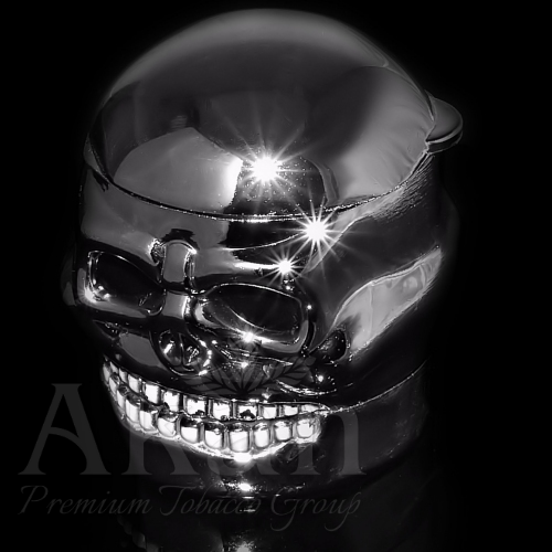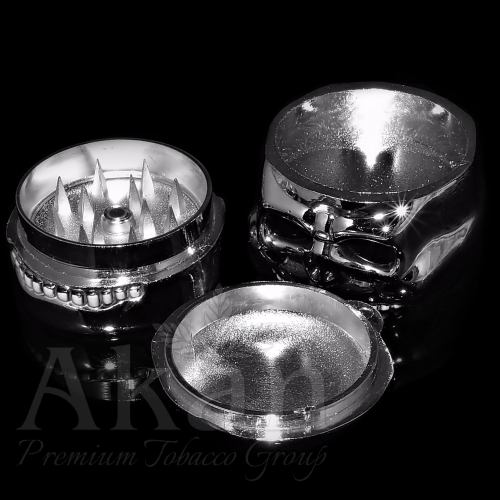 Młynek 12054 do rozdrabniania wyposażony w szczeknie zamykany pojemnik, i tarcze mielące z magnetycznym dociskiem. Całość wykonana w formie srebrnej czaszki.