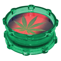 Grinder/rozdrabniacz 12031 to praktyczny młynek do wygodnego rozkruszania tytoniu. Obie tarcze zostały wyposażone w ostre noże tnące, a na krawędziach w ząbkowanie, które bardzo ułatwia przeciwległy ruch obudowy. Całość została wykonana z transparentnego, wytrzymałego akrylu i ozdobione symbolem liścia. Tarcze dociskane są do siebie dzięki magnesowi. Graficzna ilustracja wewnątrz tarczy dobierana jest losowo.