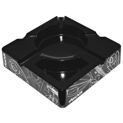 Czarna popielnica Toscano to bardzo przydatny gadżet każdego Aficionado. Ceramiczna popielniczka została pokryta czarnym, matowym szkliwem i ozdobiona znakiem graficznym w miedzianym kolorze. Popielnica posiada dwie szerokie (25 mm) łozy na cygara.
