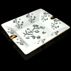 Niezwykle elegancka, biała, ceramiczna popielnica cygarowa ozdobiona motywem kwiatowym. Dzięki zastosowaniu dwóch łóż możliwe jest korzystanie z niej przez kilka osób jednocześnie. Popielnica zapakowana jest w czarny kartonik z ‘okienkiem’, przez które widać wzór. Nietuzinkowe zdobienie, wysoka jakość wykonania oraz przystępna cena sprawiają, że model ten cieszy się w naszym sklepie niezwykłym powodzeniem. -