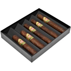 183,50 PLNZestaw prezentowy Cygara Tabacos Baez to pięć nikaraguańskich cygar jednego z bardziej utytułowanych torcedore Don Pepina Garcii. Od kilkunastu lat Don Pepin (rodowity kubańczyk) z sukcesem razem z synem Jeime i córką Jeny tworzy jedną z najlepszych manufaktur cygarowych My Father Cigars. Cygara wychodzące z tej rodzinnej fabryki cieszą się powodzeniem na całym świecie otrzymując co roku najwyższe noty wśród Aficionados.
