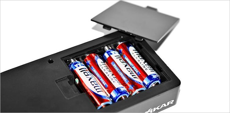 Po przeciwległej stronie obudowy znajduje się zasobnik mieszczący cztery baterie typu AA.