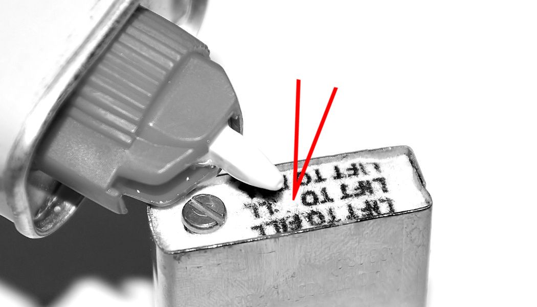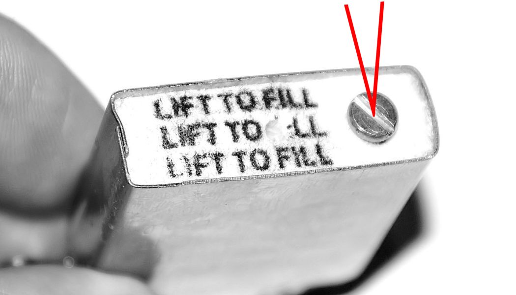 Jeśli zapalniczka tego wymaga uzupełniamy benzynę wlewając niewielką ilość przez otwór w filcowej wkładce.