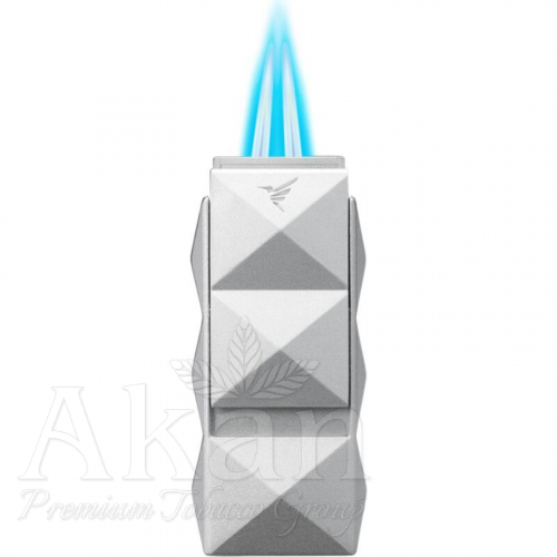 Srebrna zapalniczka Colibri Quasar II Hand Held to połączenie elegancji i funkcjonalności, idealne dla każdego miłośnika cygar, który ceni sobie wysoki standard akcesoriów. Zapalniczka została zaprojektowana w oparciu o charakterystyczny styl serii Quasar, której geometryczne piramidki na obudowie nadają jej nowoczesny i wyrafinowany wygląd. Dzięki podwójnemu palnikowi Turbo Jet, Quasar II gwarantuje szybkie i precyzyjne odpalanie cygar w każdych warunkach, nawet przy silnym wietrze. Palniki są nachylone do siebie, co tworzy stożkowaty płomień, który równomiernie i skutecznie podpala stopę cygara, minimalizując ryzyko jego uszkodzenia czy przypalenia.