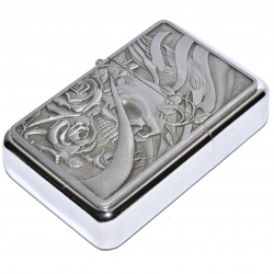 7,50 PLNWymiary zapalniczki: 58mm x 39mm x 13,2mmmm Zapalniczka benzynowa z atrakcyjnym zdobieniem na obudowie. Ta benzynówka jest całkowicie przygotowana do działania z kamieniami w zasobniku i uzbrojonym knotem, wystarczy tylko nalać benzyny i mamy bardzo praktyczną zapalarkę. -