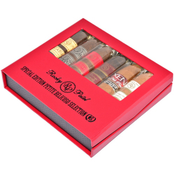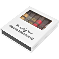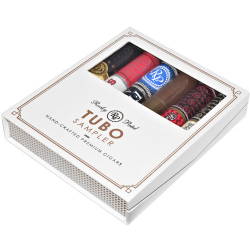 Sampler zawiera pięć cygar w formacie robusto zapakowanych w ozdobne, kolorowe tuby: